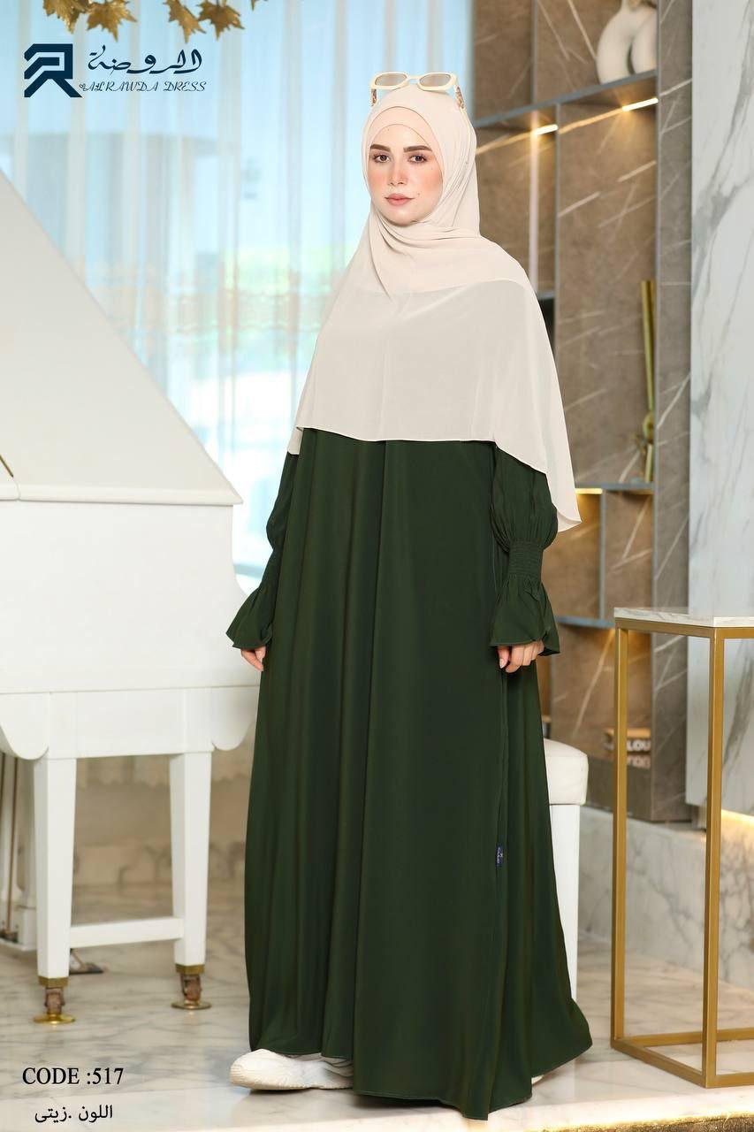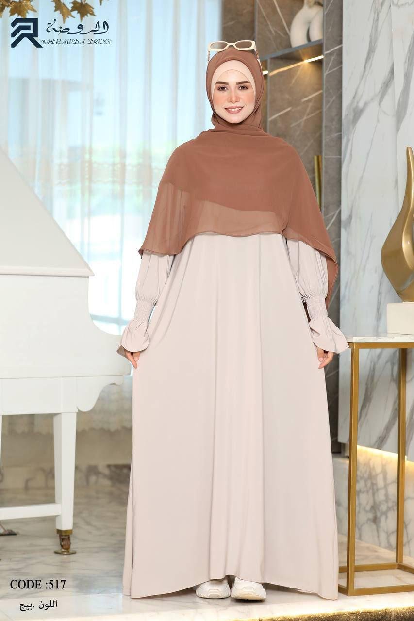 فستان واسع بتصميم دبل كلوش بيتميّز بالحركة والراحة، بخامة خفيفة وانسيابية